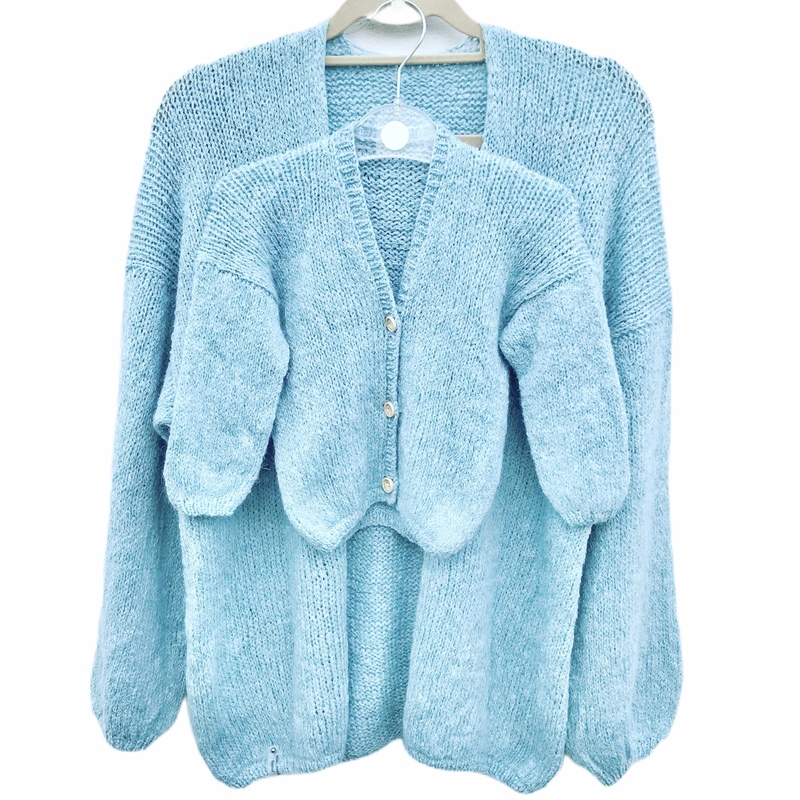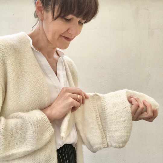 Der Cardigan wird von unten nach oben in Hin- und Rückreihen gestrickt.