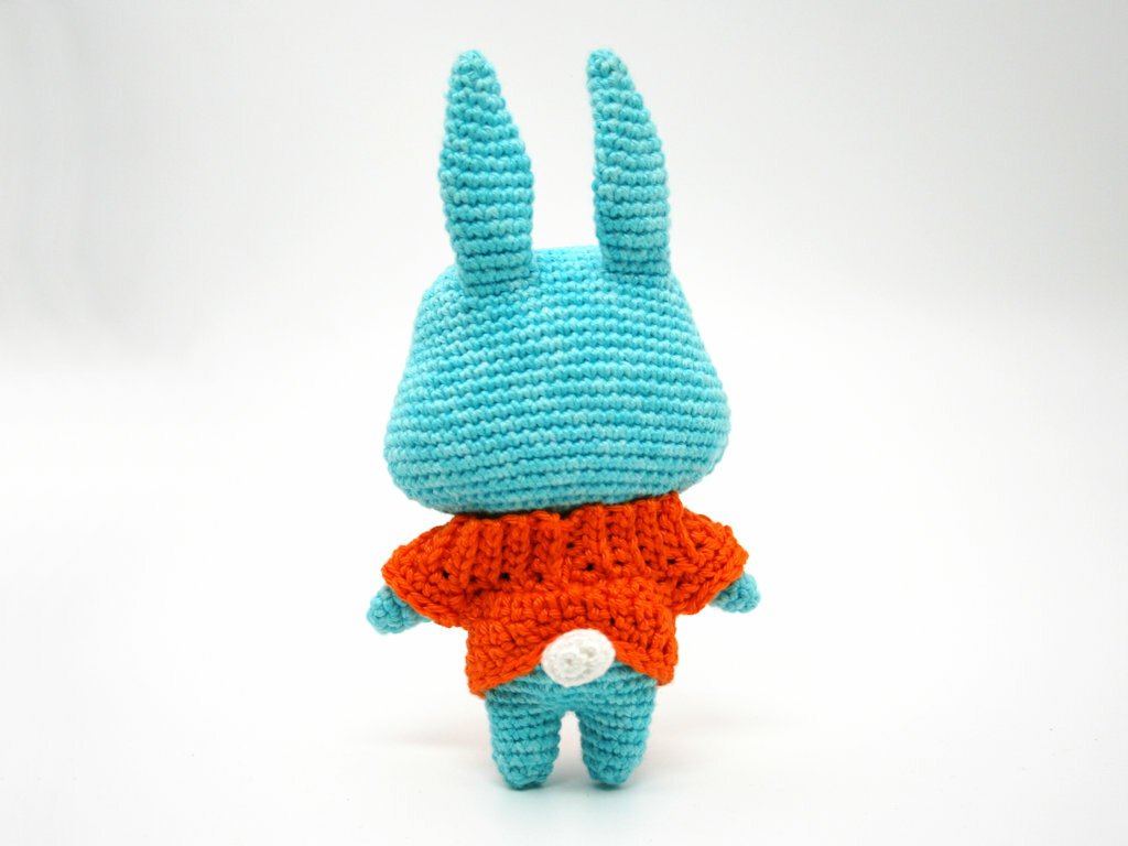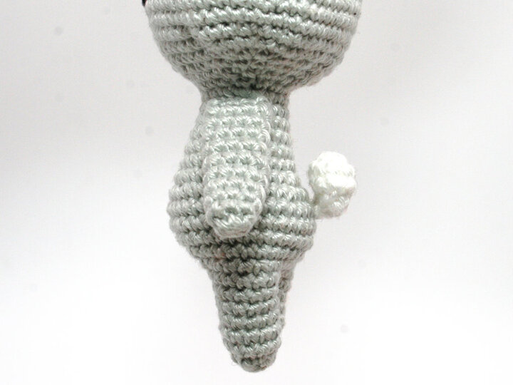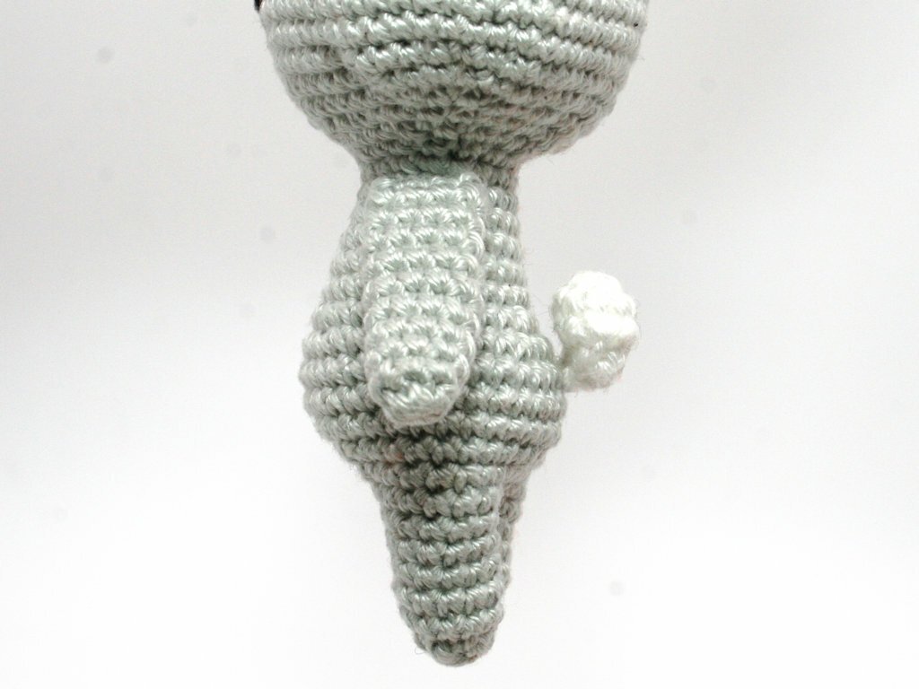Für das Häschen werden verwendet: Fadenring, Kettmaschen, feste Maschen, Zunahmen und (unsichtbare) Abnahmen.