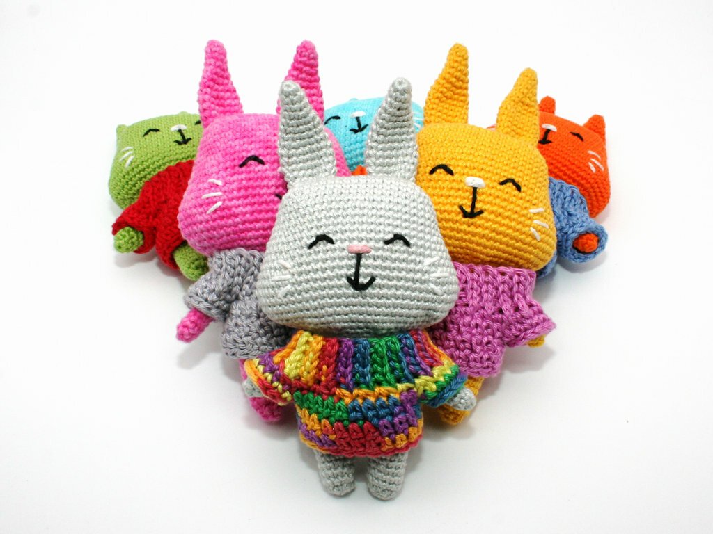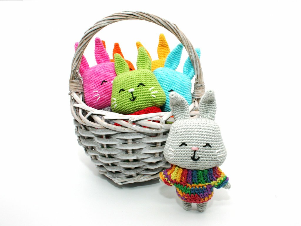 Soooo niedlich! Perfekt fürs Osternest. In ihren übergroßen Pullovern und eingekuschelt zwischen Eiern, Süßigkeiten und anderen Osterüberraschungen machen es sich die kleinen Hoppler so richtig gemütlich.