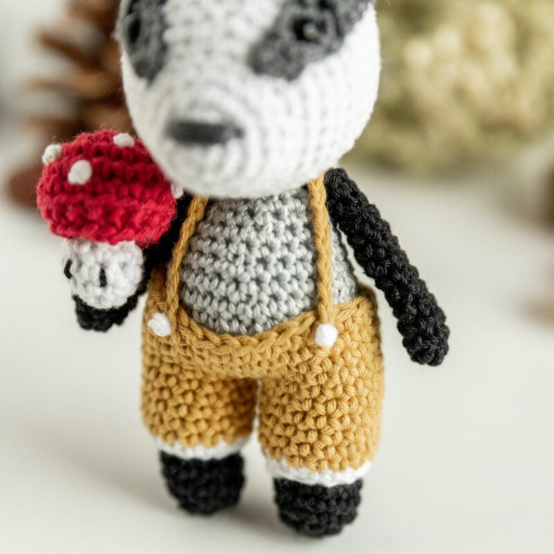 Auf insgesamt 8 Seiten erkläre ich dir mit vielen Bildern, wie du Dieter Dachs ganz einfach nachhäkeln kannst.