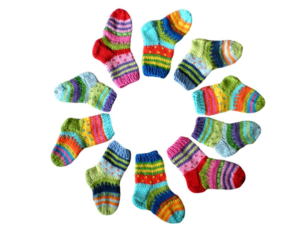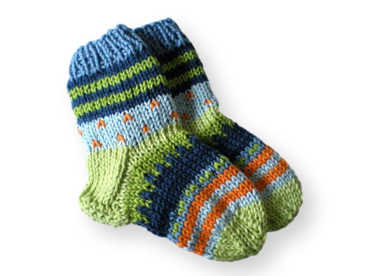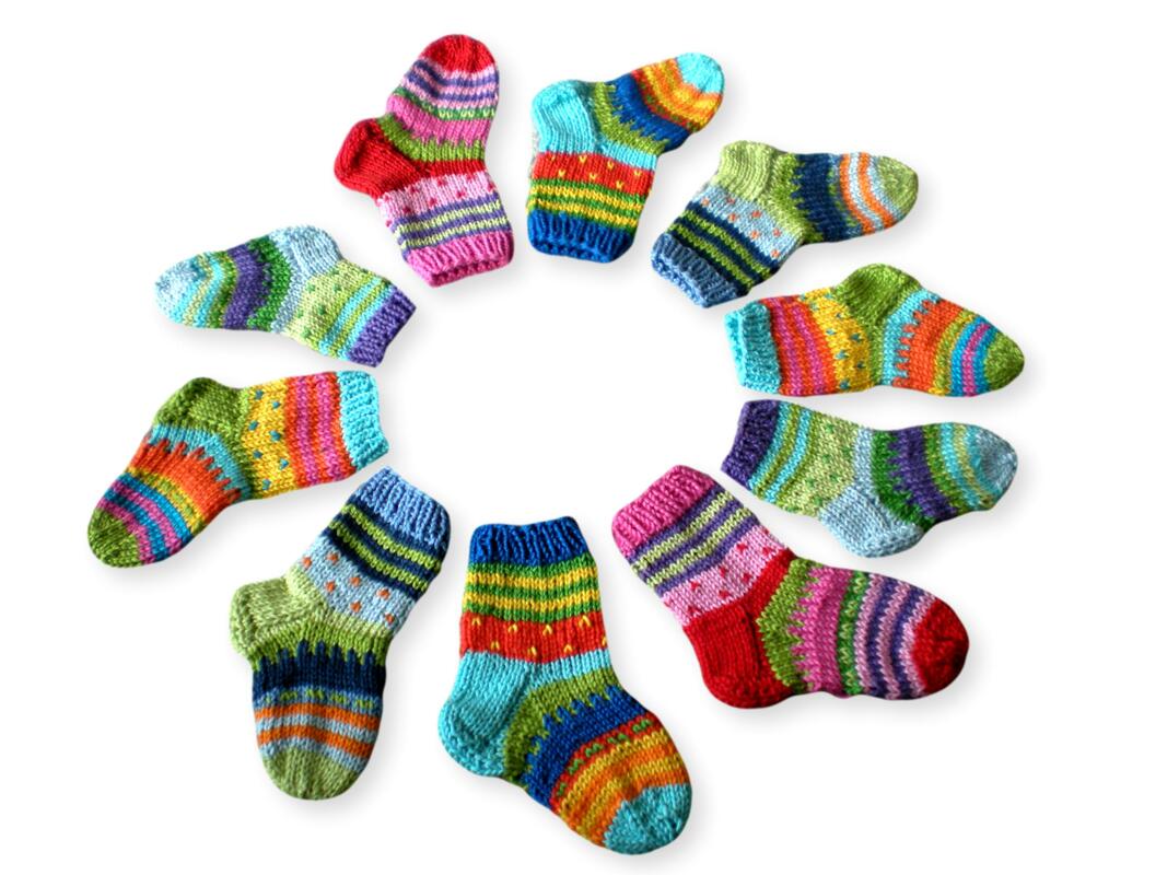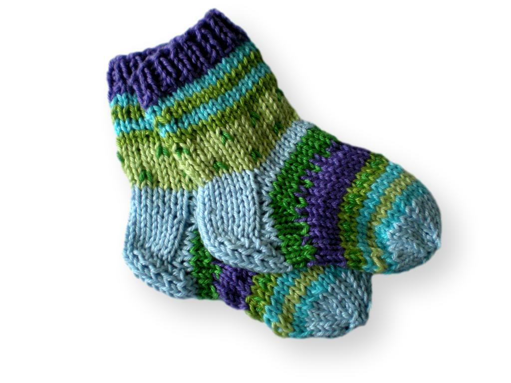 Diese bunten Babysöckchen sind genau richtig für kleine Babyfüße. Gestrickt sind sie aus Baumwollresten (Lauflänge 125 m je 50 g)