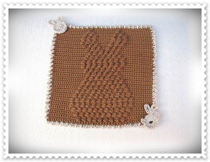 Durch das einfache Noppenmuster wird dieser Topflappen im Hasenkostüm zu einem tollen Hingucker.