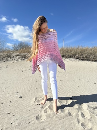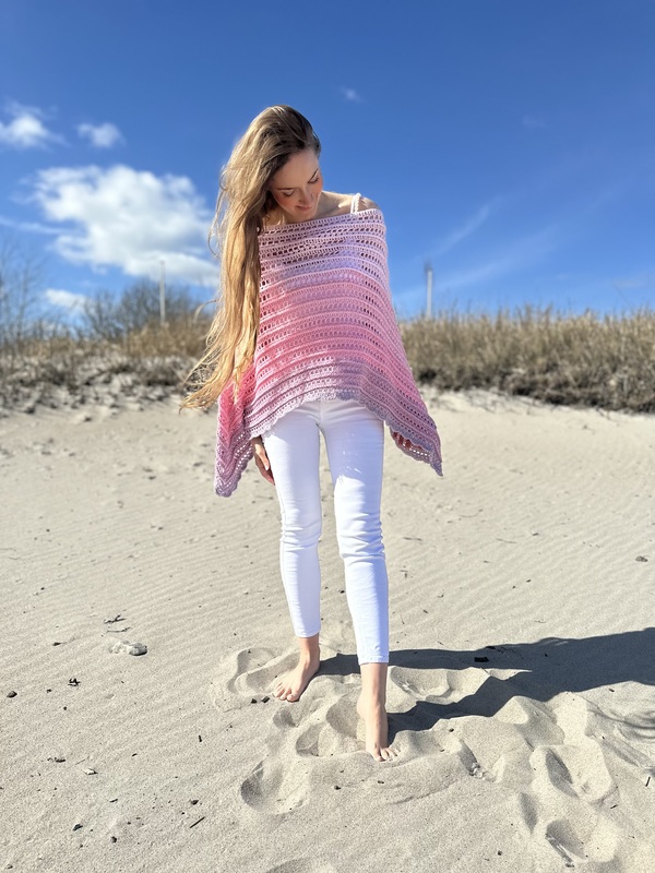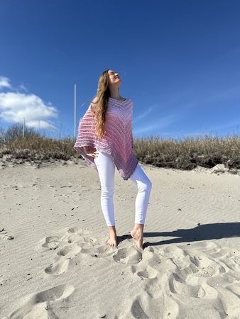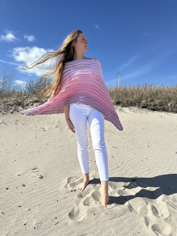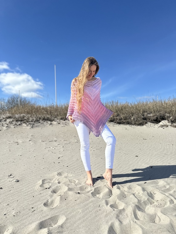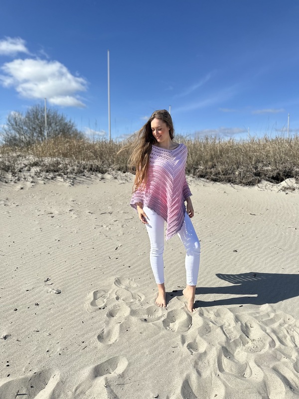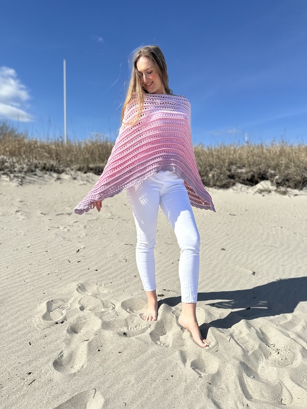 Hier bekommst Du eine Anleitung für den schönen Ruck-Zuck-Poncho. Wie der Name schon sagt, ist dieser sehr schnell und einfach zu fertigen. Er ist an jede Größe anpassbar und besonders gut für Farbverlaufsgarne geeignet.