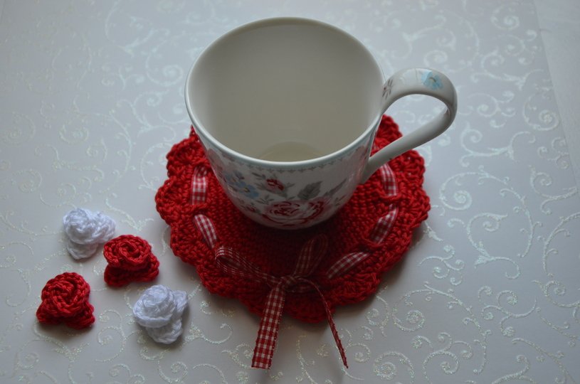 Die fertigen Untersetzer und Röschen dürft ihr gerne verkaufen, dann bitte ein Link zu dieser Anleitung ♥