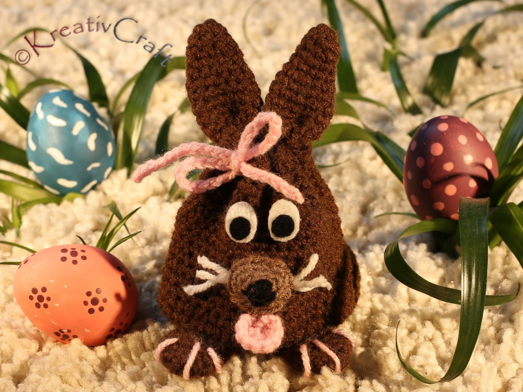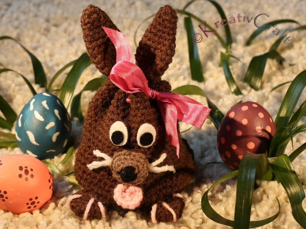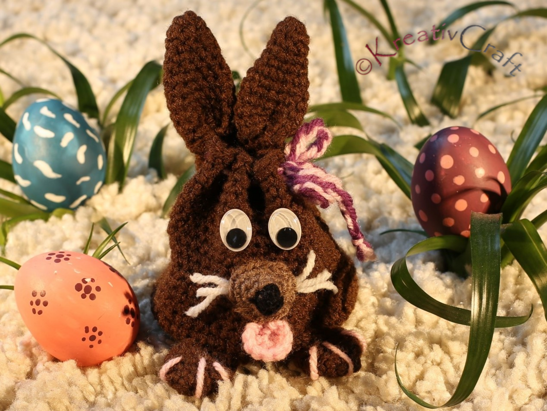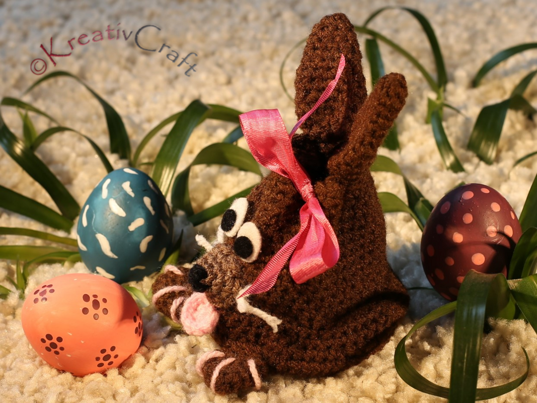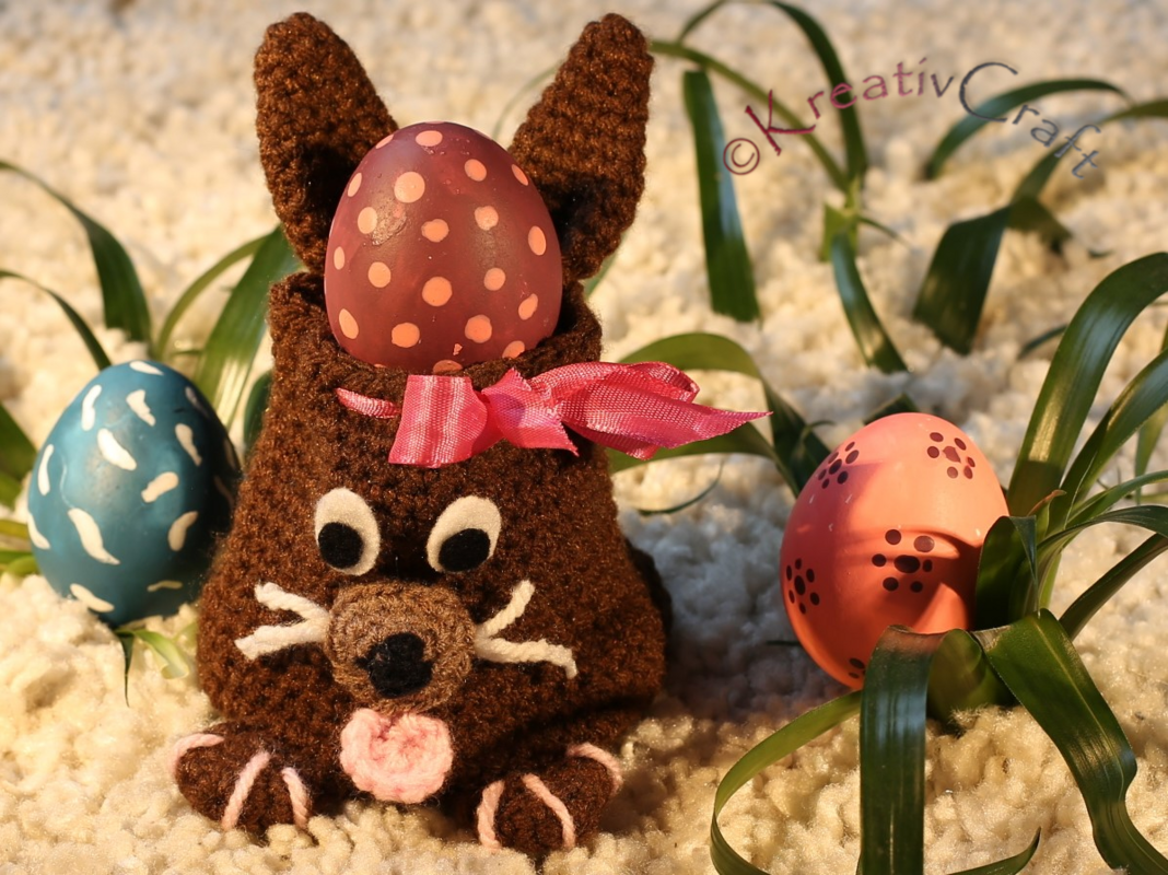 Durch die Wahl der Garnfarbe wird dieses freche Osterhasen-Säckchen zur individuellen und kreativen Geschenkverpackung für eine Osterüberraschung oder zum echten Hingucker.