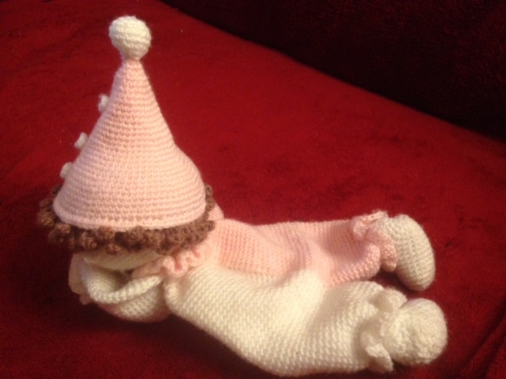 Ich sah im Internet einen wunderschönen kleinen Clown und dieser inspirierte mich dazu einen Babypüppchen Clown zu entwerfen.