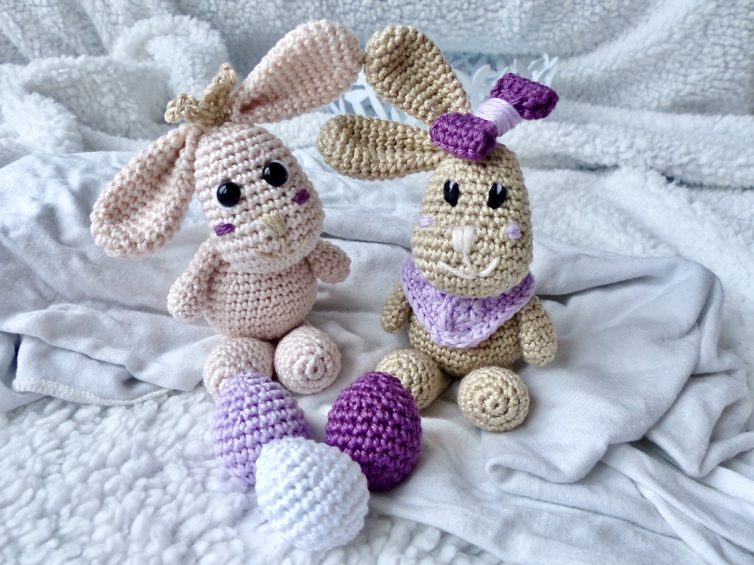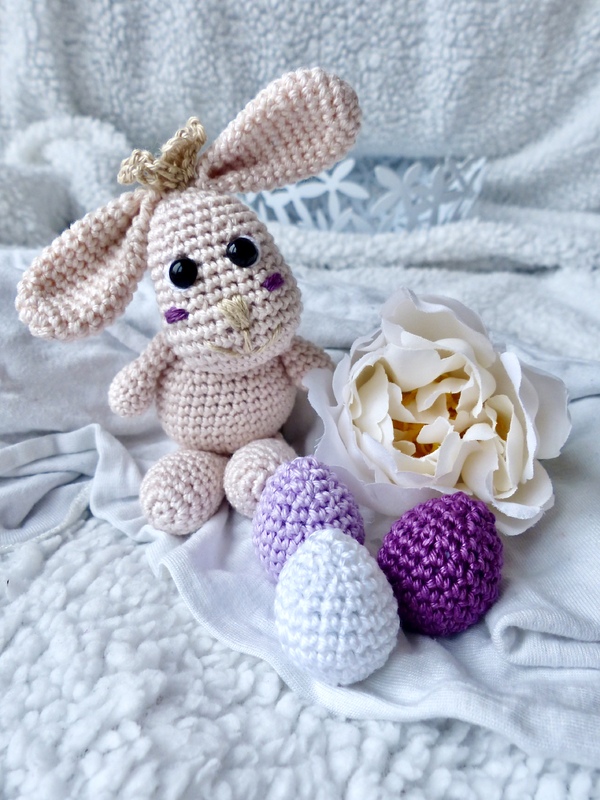 Dann möchte er eure Wohnung dekorativ schmücken, als kleines Mitbringsel zum Osterbrunch dienen oder einfach so eine Freude bereiten. Mit dabei sind auch die kleinen Ostereier, die sich prima für die Verwertung von Wollresten eignen und schnell gehäkelt sind.