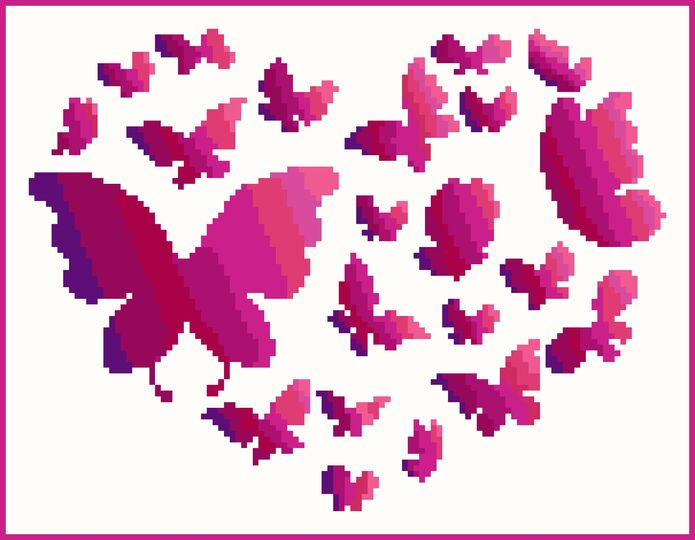 Schmetterlingsherz ist ein digitales Diagramm, das für verschiedene Häkeltechniken verwendet werden kann, wie Ecke zu Ecke = C2C, Mini C2C, feste Maschen, halbe Stäbchen, Stäbchen, tunesisch häkeln, Bobble Stitch. Alternativ kann dieses Produkt auch für Kreuzstich, Stricken, Hamma-Perlen, Kunststoff-Leinwand und andere Projekte verwenden werden.