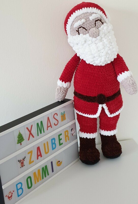Inspiriert von meiner Kindheitserinnerung entwarf ich Bommi, den Weihnachtsmann aus flauschigen Maschen. 🎅