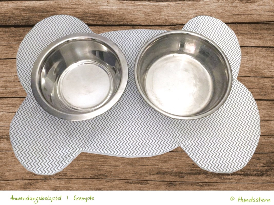 Nähen Sie Ihrem Hund eine rutschfeste Napfunterlage, zum Beispiel aus wasserabweisenden Stoffen oder aus saugfähigen Baumwoll- und/oder Frotteestoffen.
