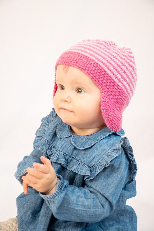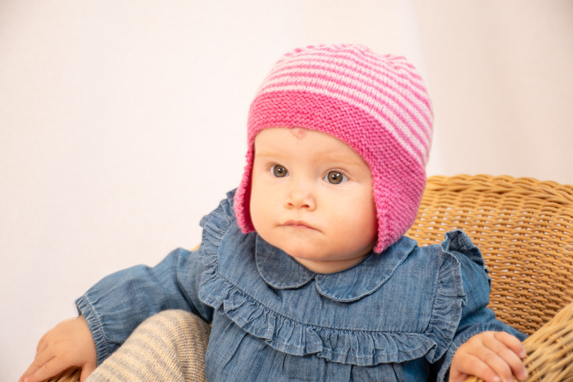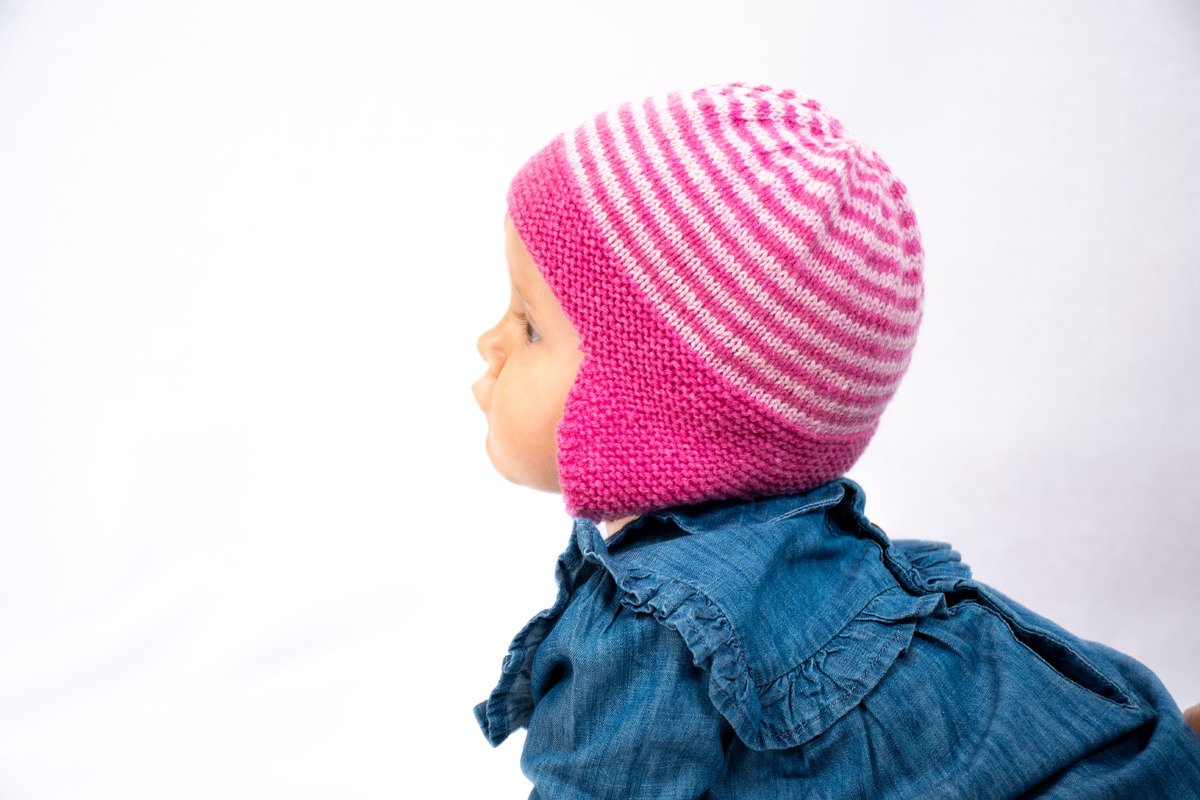 Hallo, darf ich mich vorstellen? Ich bin Mollie, eine super niedliche Babymütze mit wärmenden Ohrenklappen und, wenn Ihr mögt, praktischen Bindebändchen und einem lustigen Bömmel.