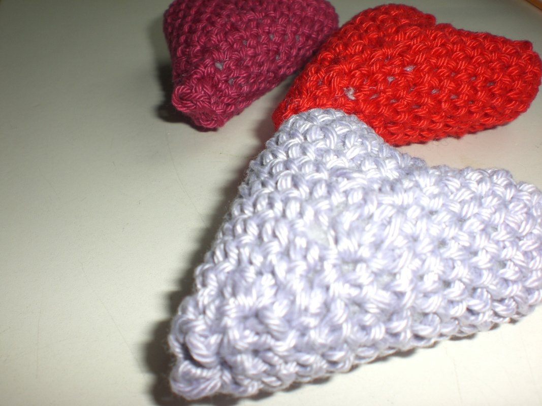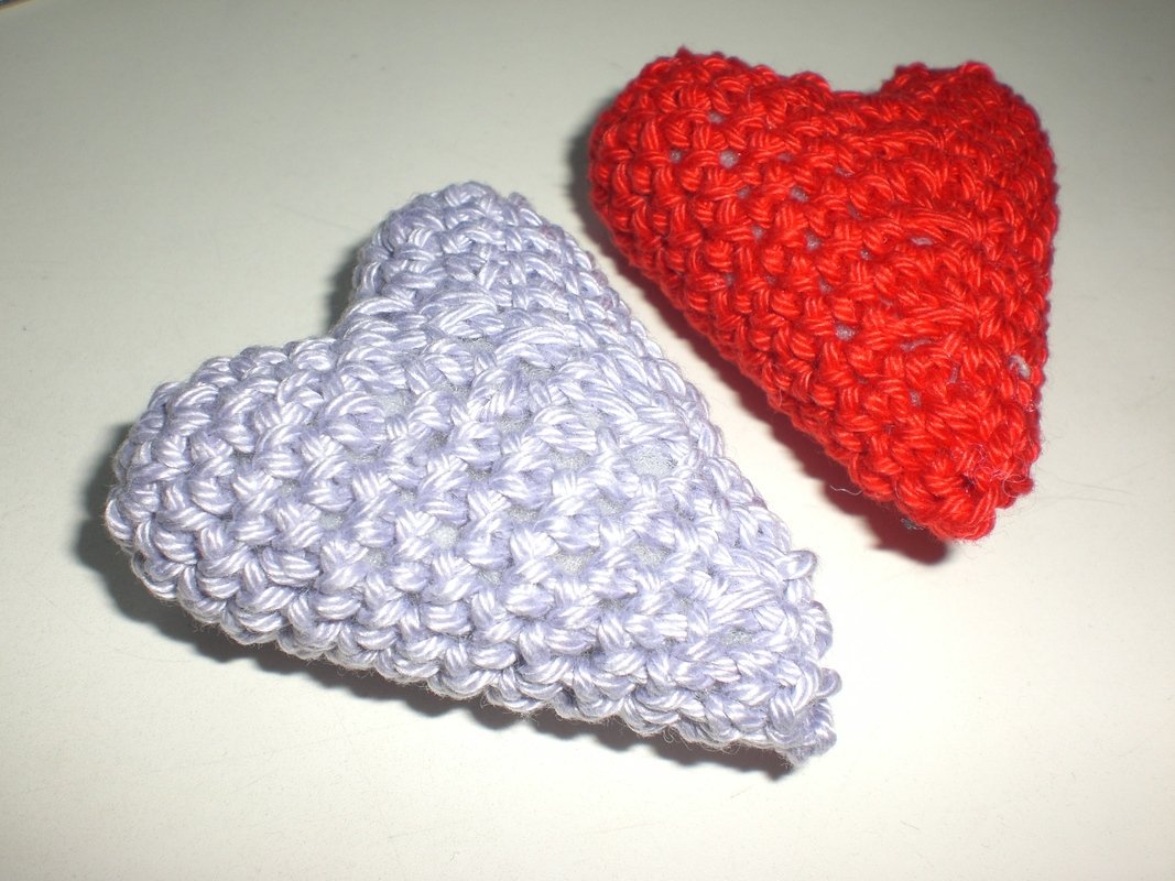 Einfache bebilderte Anleitung um diese süßen Herzen nach zu häkeln.