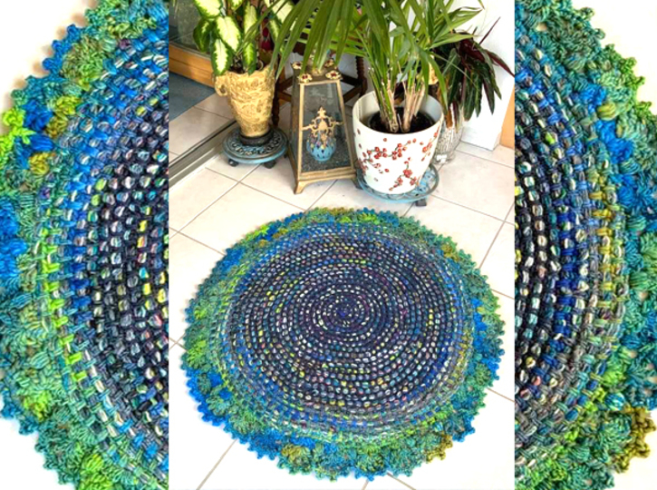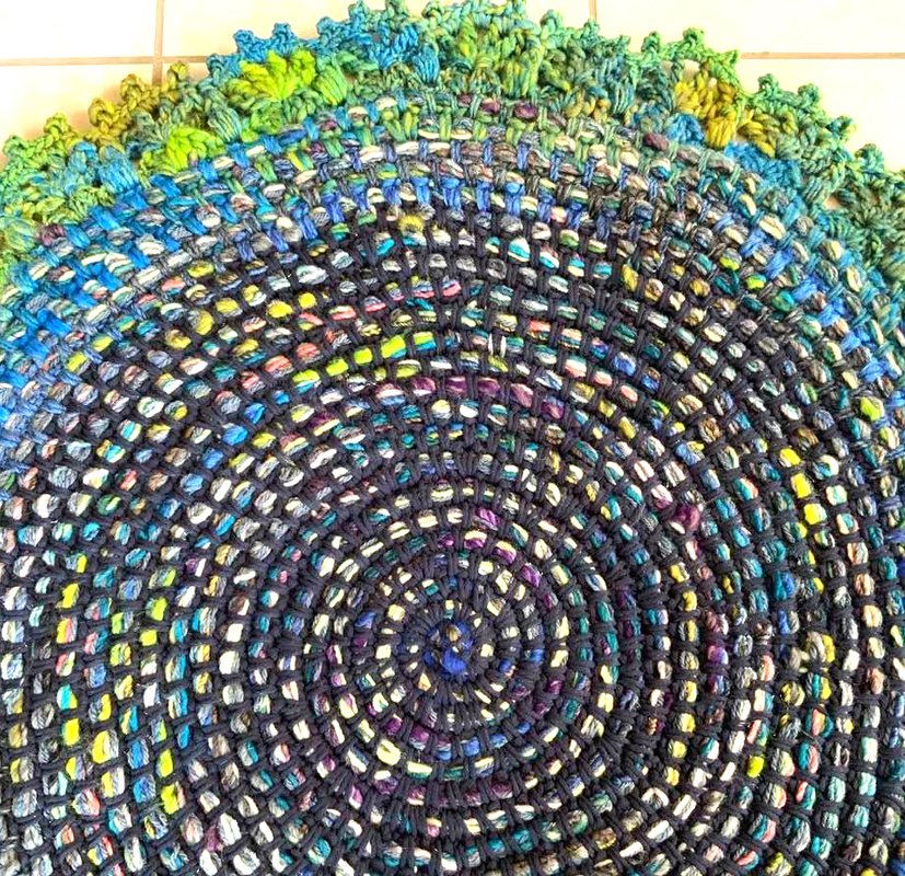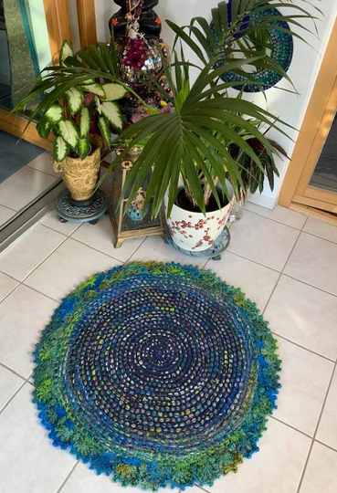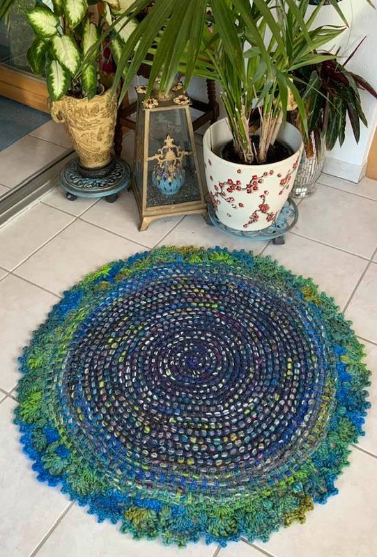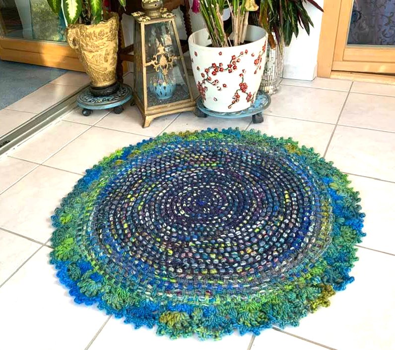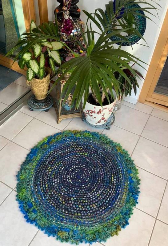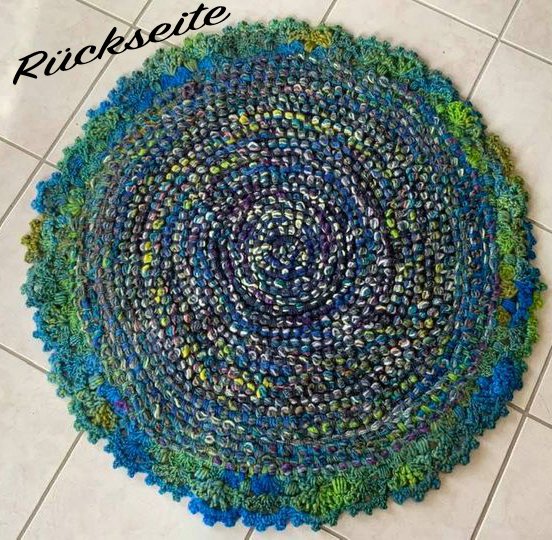 Mein fertiger Teppich ist 660 g schwer + hat einen Durchmesser von 84 cm