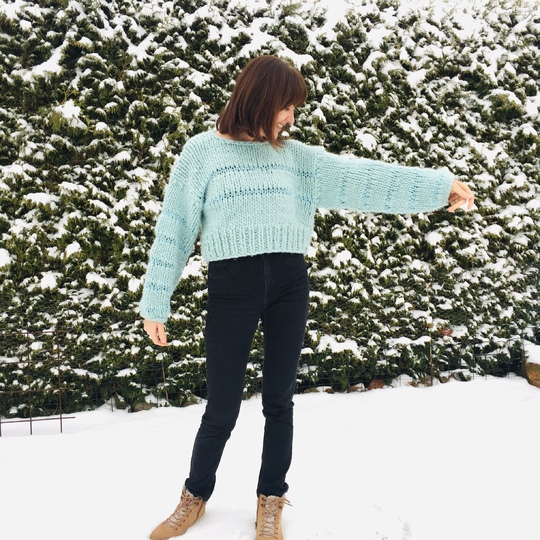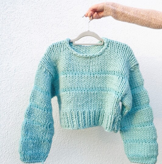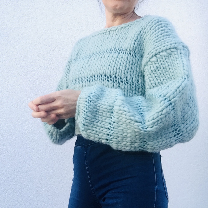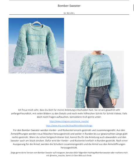 Für den Bomber-Sweater werden Vorder- und Rückenteil einzeln gestrickt und zusammengenäht. Aus den Ärmelöffnungen werden neue Maschen herausgestrickt und weiter in Runden bis zur gewünschten Länge glatt rechts gestrickt. Wenn du schon fortgeschrittener bist, kannst Du Dir die Anleitung auch abwandeln und den Sweater auch am Stück stricken. Dafür wird der Vorder- und Rückenteil einfach in Runden gestrickt. Nach einer Aussparung für die Ärmel, werden die Schultern zusammengenäht und die Ärmel aus den Ärmelöffnungen herausgestrickt.
