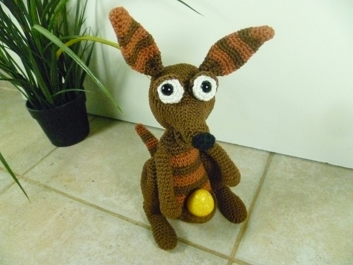 Dies ist eine kostenlose Häkelanleitung im Pdf-Format, für Flips das kleine Känguru.