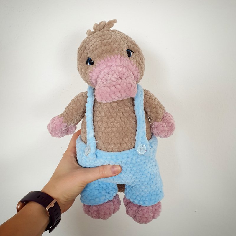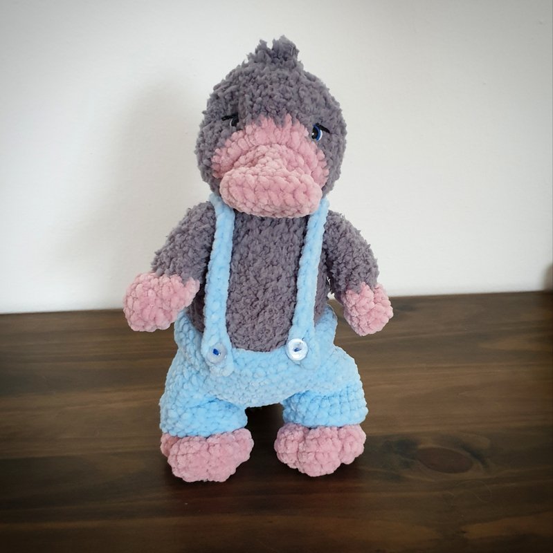 Das ist eine Häkelanleitung für Schnabeltier Pauli und seine Hose.
