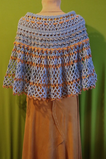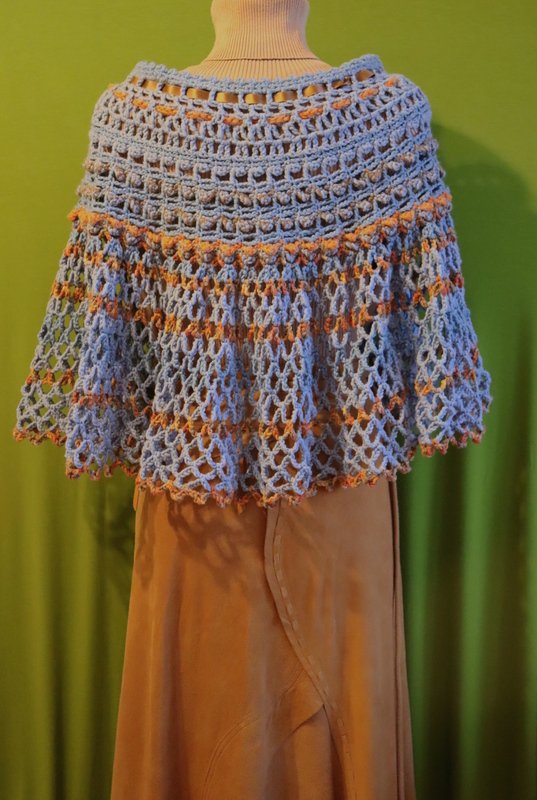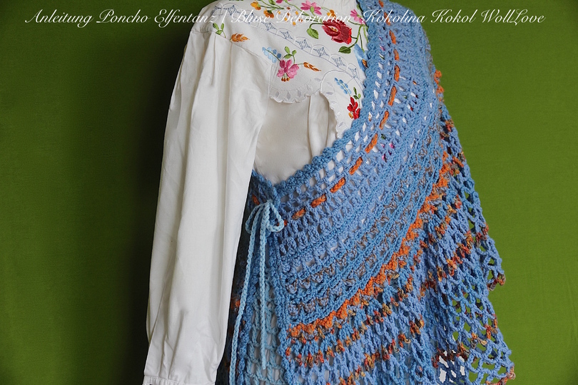 Elfen Tanz hat eine Einheit Größe und kann auch beliebig vergrößert werden im 2er LM mehr Maschenanschlag – das Originals passt er gut für Größe 36 – 42 – ab 44 eben mehr Maschenanschlag durch 2 teilbar - der Poncho reicht gut über die Schultern und kann da natürlich auch verlängert werden