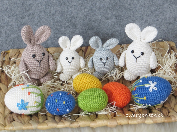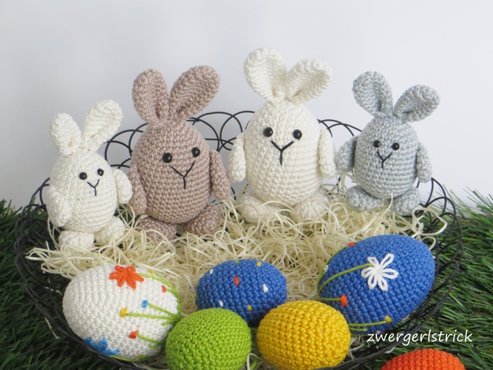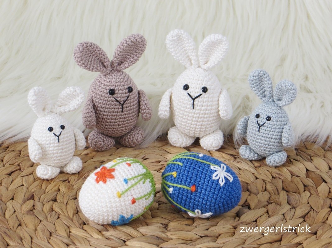 Häkelanleitung für bunte Ostereier oder Eier-Häschen in 2 Größen