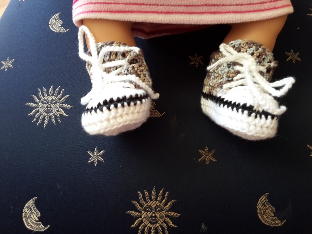 Dieses PDF Datei beinhaltet Häkelanleitungen für diese süßen Turnschuhe .