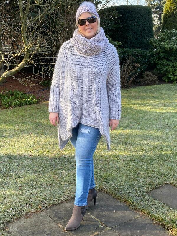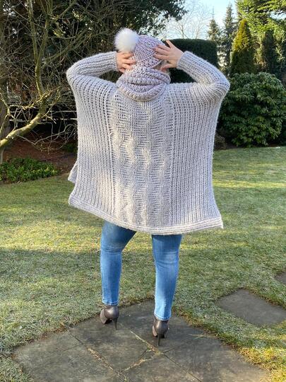 Der Wede-Poncho Prima ist ein absoluter Hingucker und kann, durch das tolle Muster von beiden Seiten getragen werden. Passend dazu, in der Anleitung enthalten, gibt es eine Wende-Mütze.