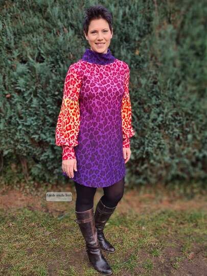 Durch die Auswahl verschiedener Ärmelvarianten und Stoffkombinationen kann das Kleid je nach Geschmack von schlicht bis extravagant gestaltet werden.
