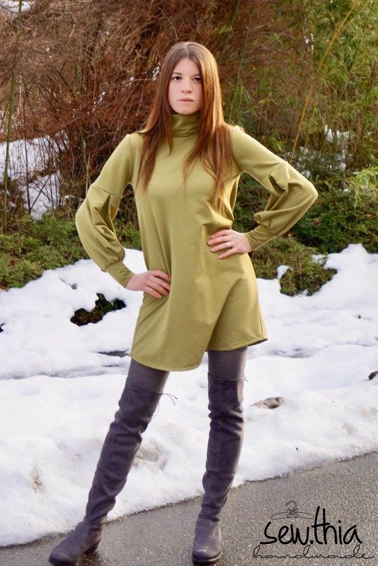 Ein besonderes Highlight sind die variablen Ärmelvarianten – von schlichten, schmalen Ärmeln bis hin zu raffiniert geschnittenen Ballonärmeln mit Bündchen. Diese Details machen das Kleid wandelbar und bieten viele Möglichkeiten zur individuellen Gestaltung.
