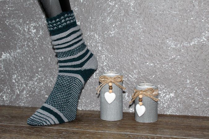 Durch die große Auswahl an Farben bei den 4fädigen Strumpfgarnen, kann jeder in seinen Lieblingsfarben stricken; man sollte jeweils einen hellen und einen dunklen Ton auswählen.