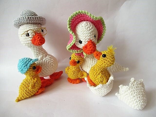 Die erwachsenen Gänse sind etwa 12 cm groß, die Küken ungefähr 5 cm.