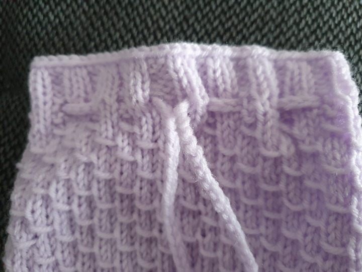 Sie ist mit einem Kordeldurchzug in einem Stück gerade hoch gestrickt und blitzschnell fertig.