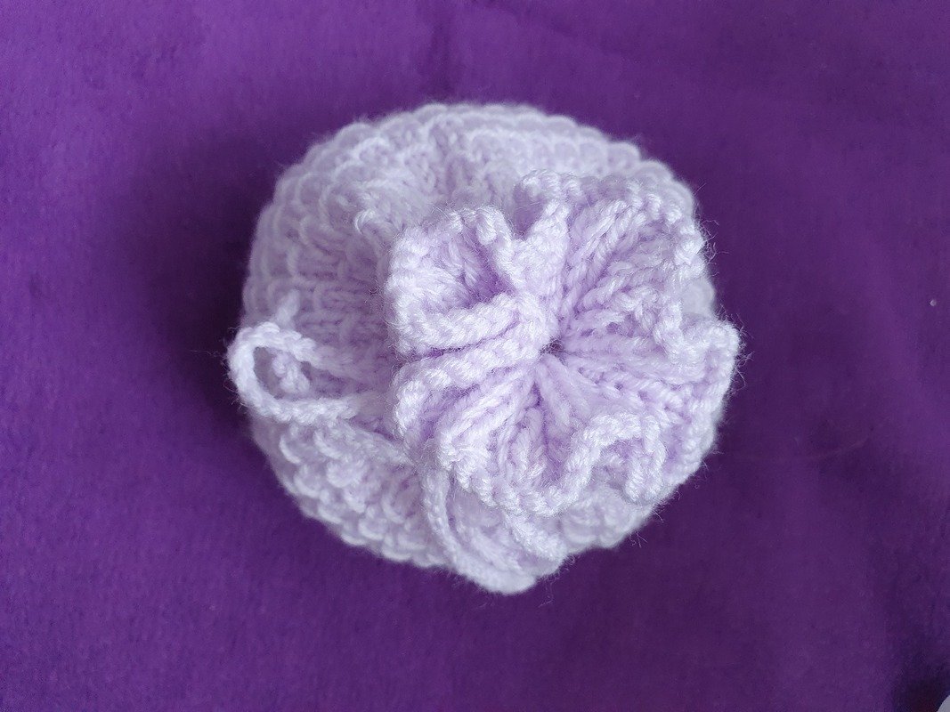 Diese niedliche Babymütze passt wunderbar zum Babyschal mit Überzügen gestrickt und ist ideal für die Ausfahrt an kühlen Tagen.