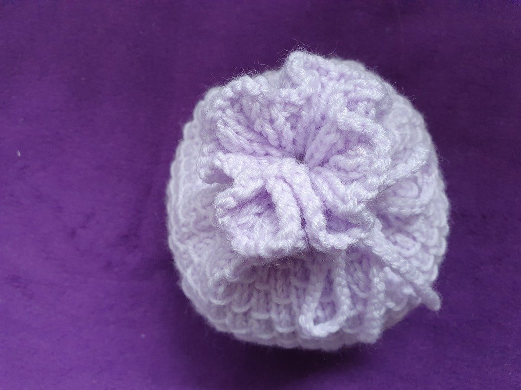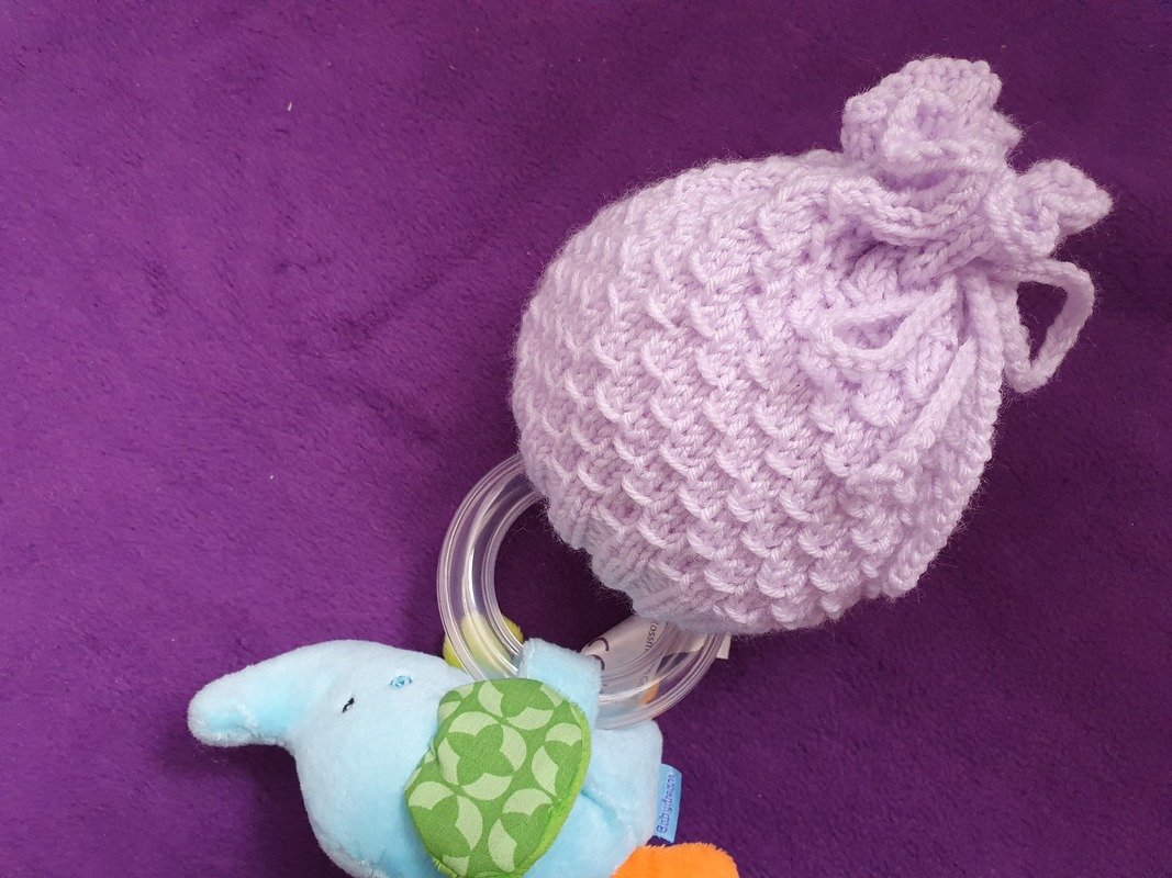 Material ca. 50 Gramm Babywolle wie zum Beispiel die Gründl Baby uni für Nadelstärke 4. Ich habe mit einem Nadelspiel Stärke 3 und 3,5 gestrickt.