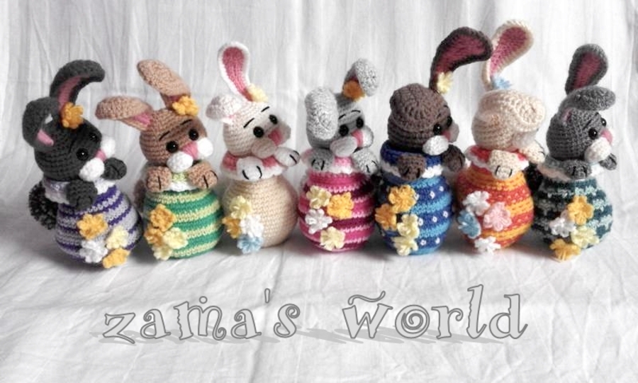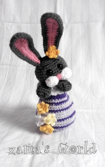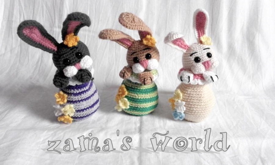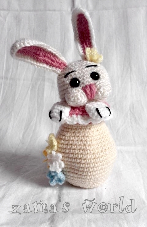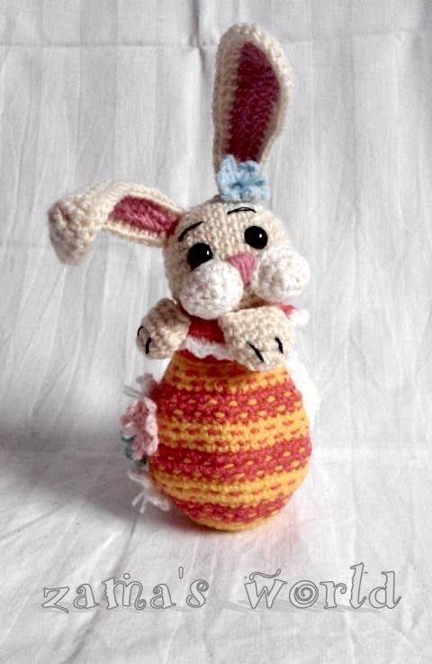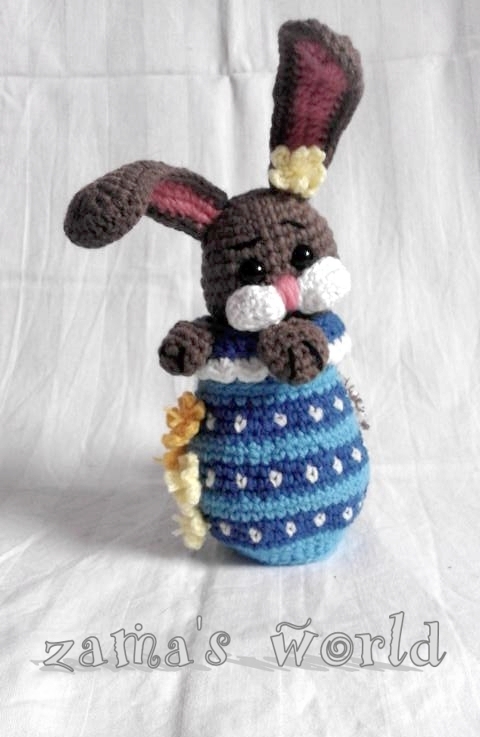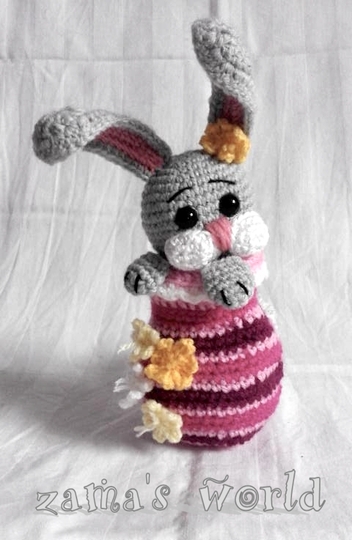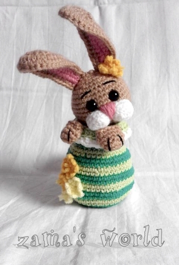 Mein Hasenei misst circa 20 cm bis zu den Ohrenspitzen und wurde mit einer Häkelnadel der Stärke 1,50 gefertigt.