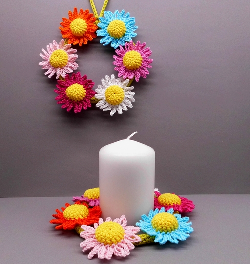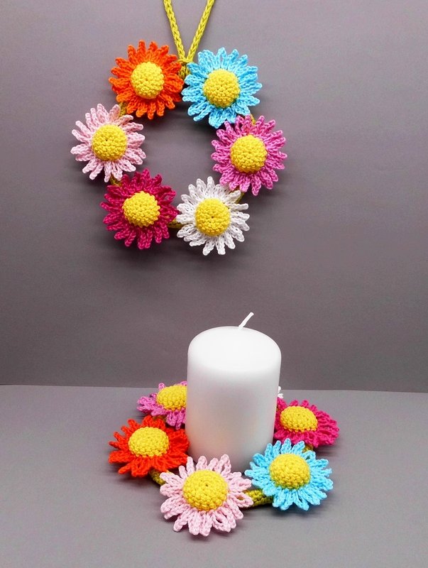 Die fröhlich-bunten Blumen-Kränze sind ein schöner Blickfang an Türen, Wänden oder auf dem Tisch und verbreiten sofort gute Laune.