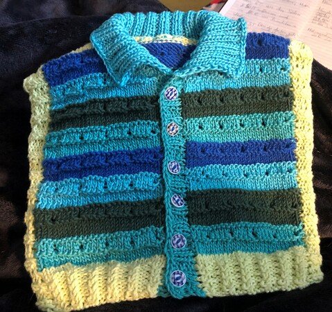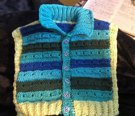 Da bei mir schon Frühlingsgefühle erwacht sind, habe ich diese ärmellose Babyweste für meinen Enkel gestrickt. Ideal für die Übergangszeit und super schnell gemacht.