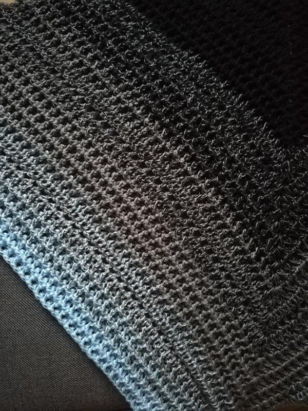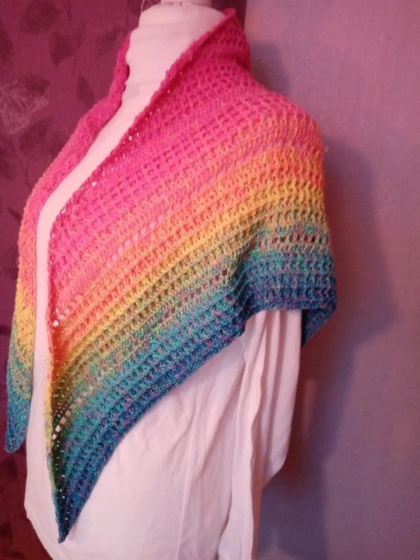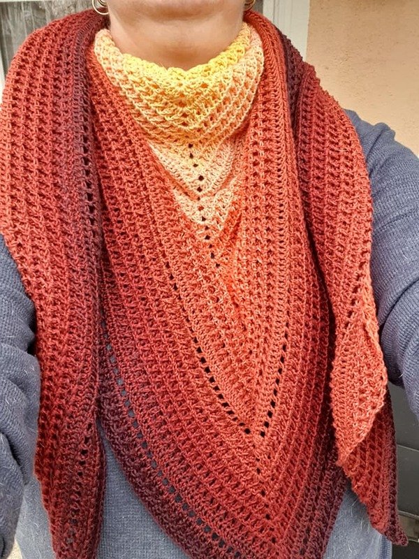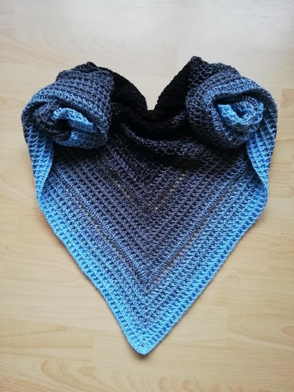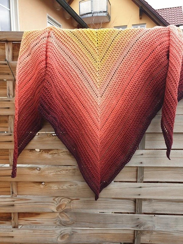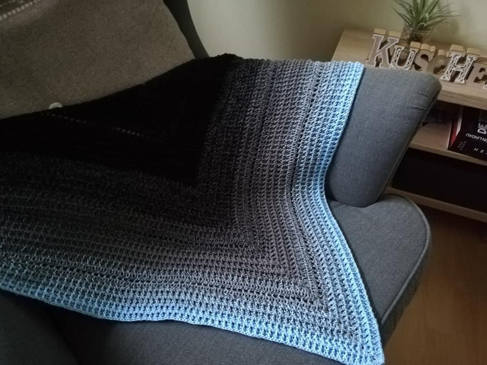 Die Anleitung ist schriftlich, bebildert und beinhaltet eine Häkelschrift. Sie ist auch für Anfänger geeignet. Mit wenigen Reihen die sich immer wiederholen ist das das perfekte Tuch zum nebenbei häkeln