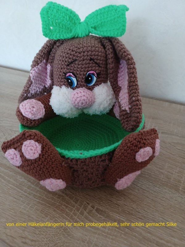 Ich habe zusätzlich nach Absprache mit meiner Freundin deren Foto eingestellt, sie häkelt seit Kurzem und hat die AL ,also den Korb etwas anders gearbeitet, kam sehr gut zurecht.