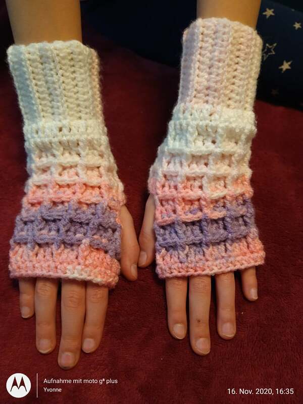 Hier findet ihr noch passend zur Mütze und dem Stirnband die Armstulpen. So hat man ein komplettes Set zum nächhäkeln.