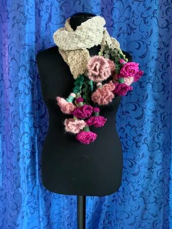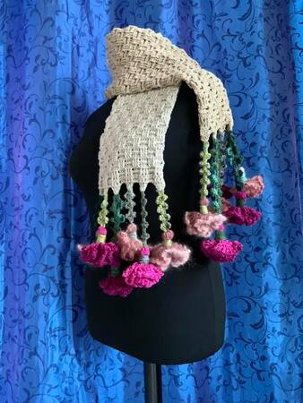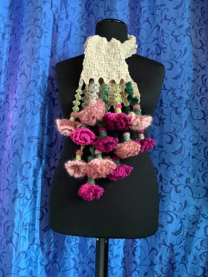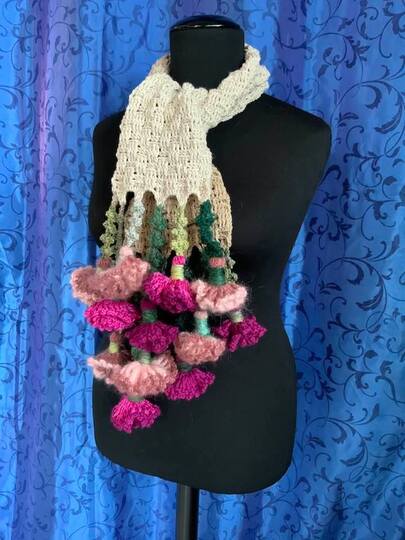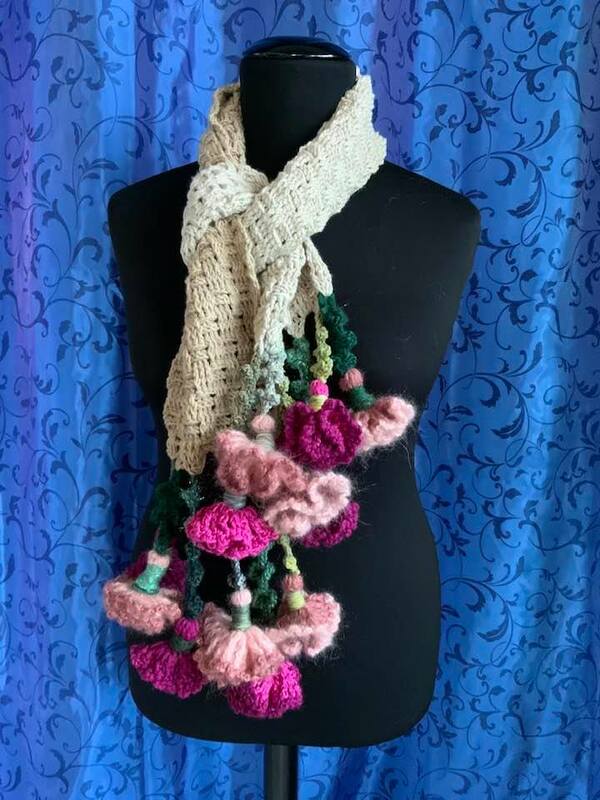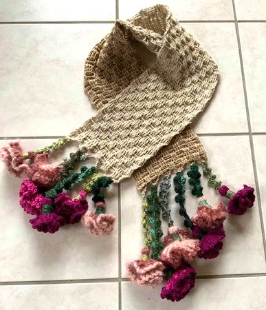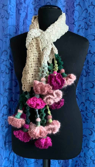 Schal Nelke-ELKE ist ( mit Blumen ) 160 cm lange + 17 cm breit und wiegt 290 gr