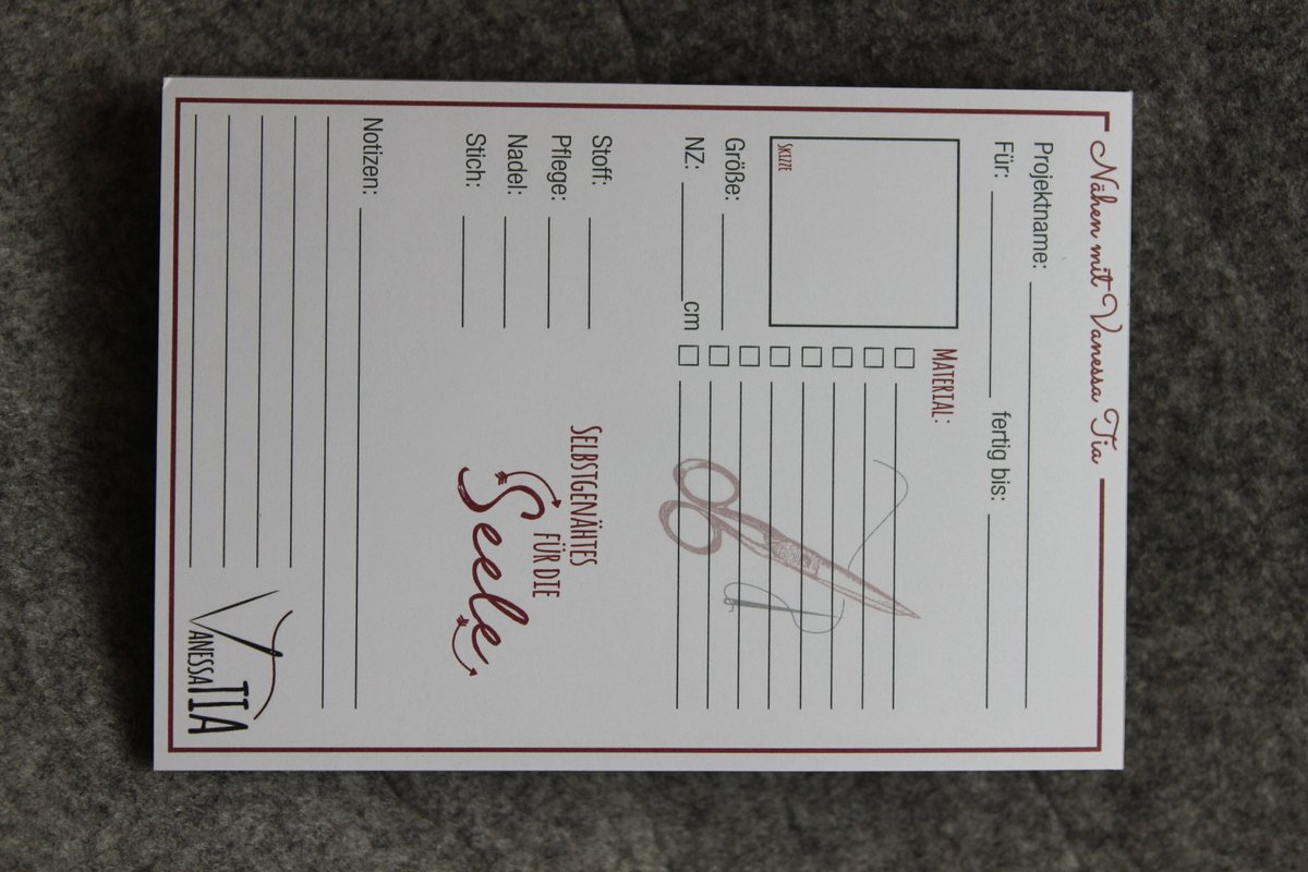 Das schöne an dem Zettel, der nach dem Projekt übrig bleibt? Du wirfst ihn nicht in den Müll! Denn, wenn du ihn mit dem Schnittmuster archivierst, brauchst du ihn beim nächsten mal nicht neu schreiben!