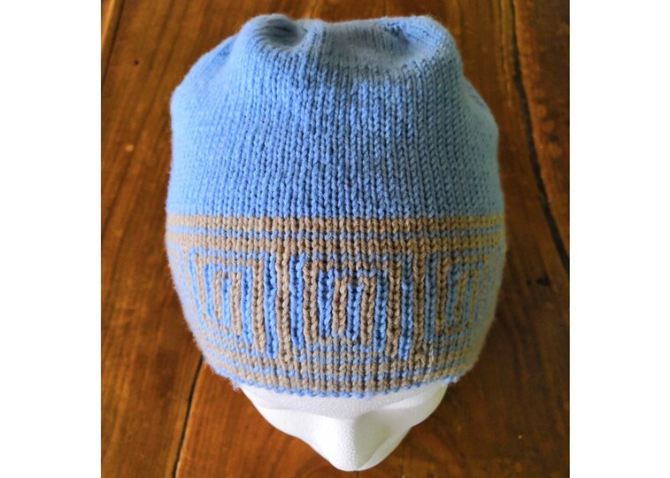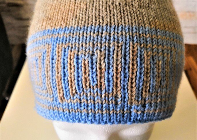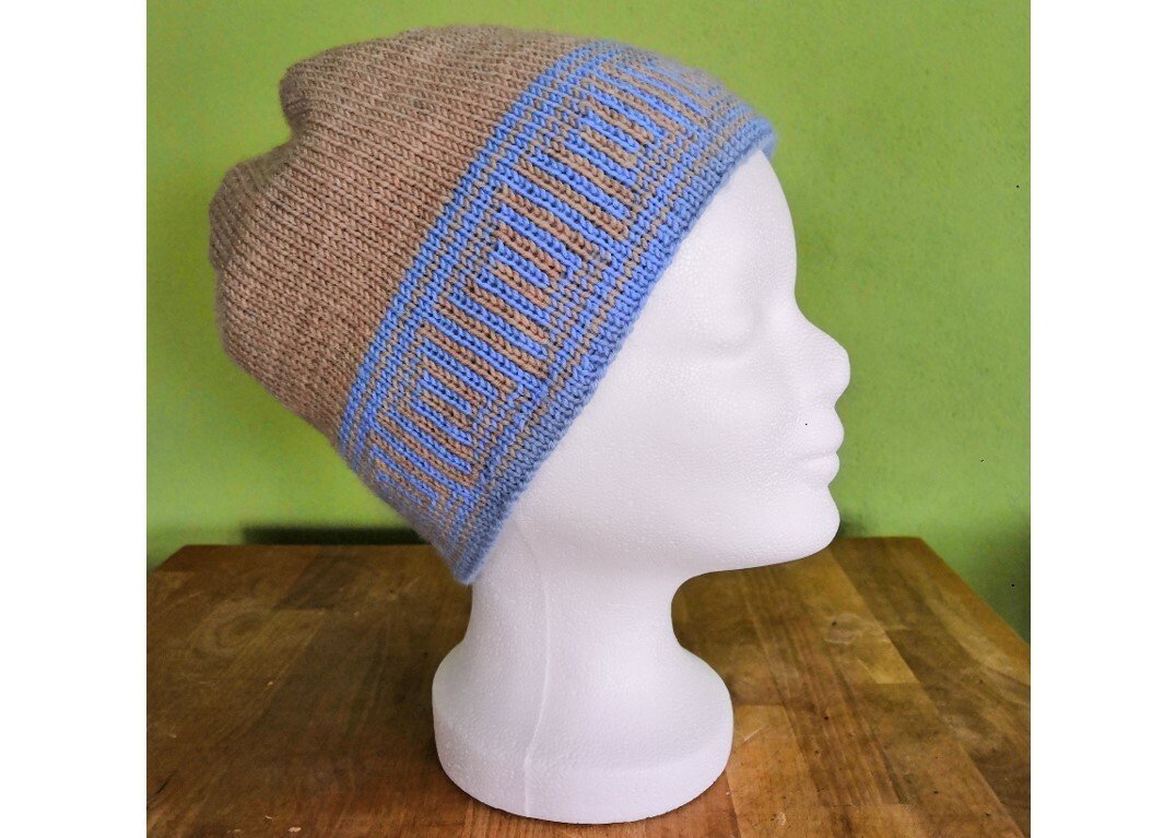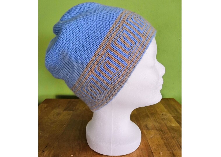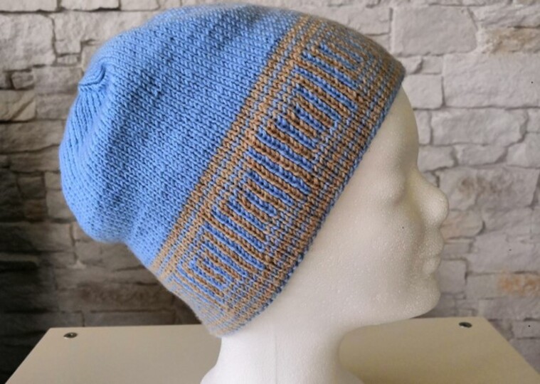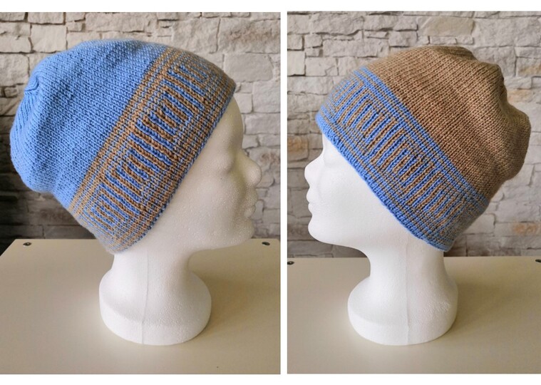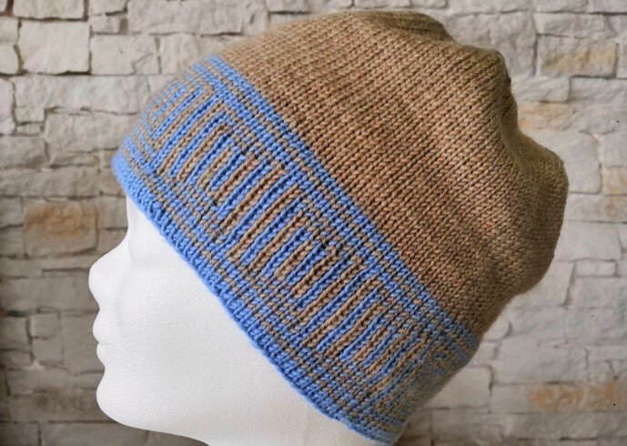 Raffiniert ist die Mütze trotz aller Schlichtheit - denn im Handumdrehen hast Du eine blaue Mütze mit beigem Muster (statt beiger Mütze mit blauem Muster), dank der Doubleface Stricktechnik!