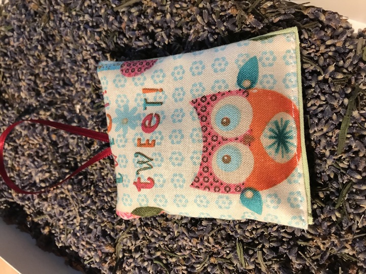 Das Lavendelsäckchen ist 9 cm hoch u. ca. 7 cm breit.