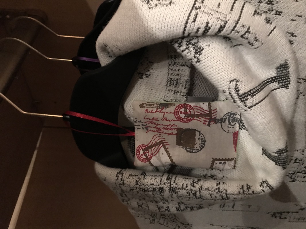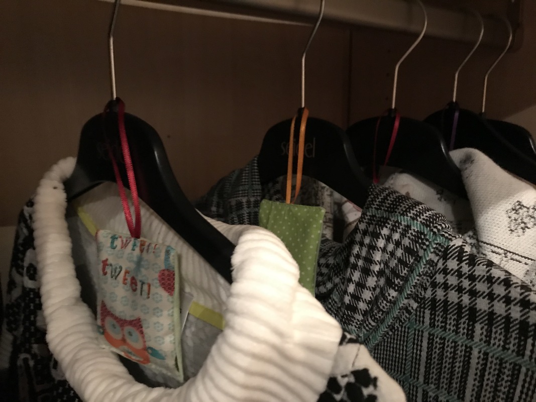 Das Band dient zum Anhängen am Kleiderbügel, aber zwischen den Pullis kann man es auch gut platzieren.