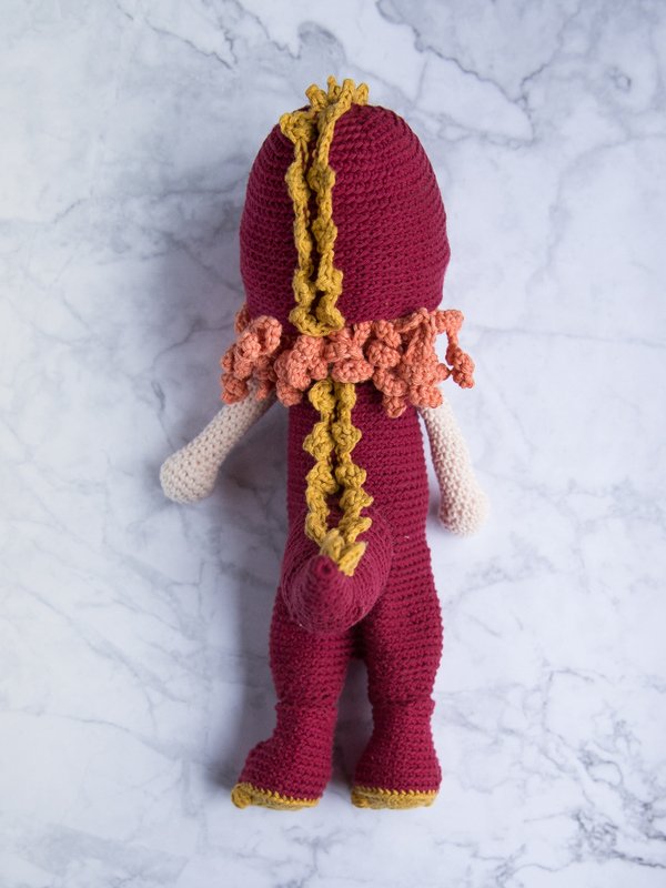 Dein Outfit häkelst du in der gleichen Häkelnadel-Stärke wie schon deine Puppe gehäkelt wurde.