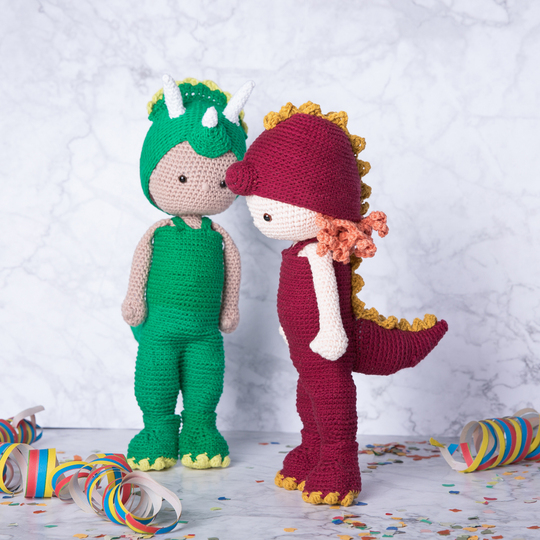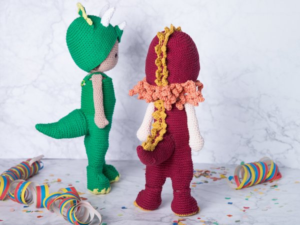Outfit 10 - Die Dinosaurier. Fasching - Karneval - Verkleidungsspiel! Lass deine Anziehpuppe Toni in ein Kostüm schlüpfen! Es warten ein Stegosaurus und ein Triceratops Kostüm darauf ausgeführt zu werden.