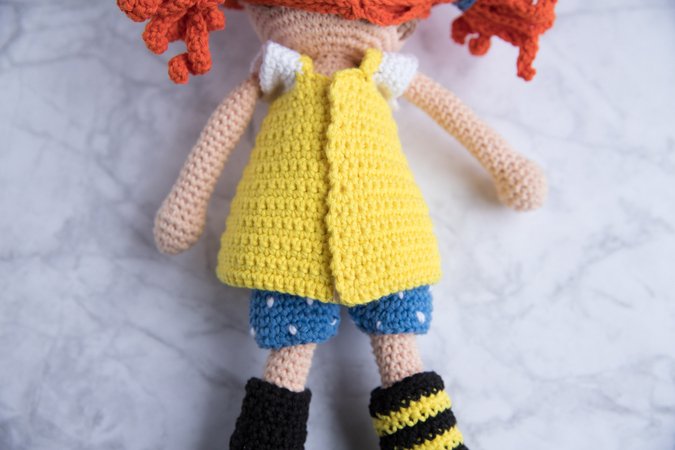 Dein Outfit häkelst du in der gleichen Häkelnadel-Stärke wie schon deine Puppe gehäkelt wurde.