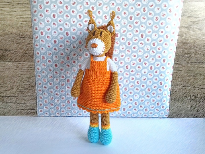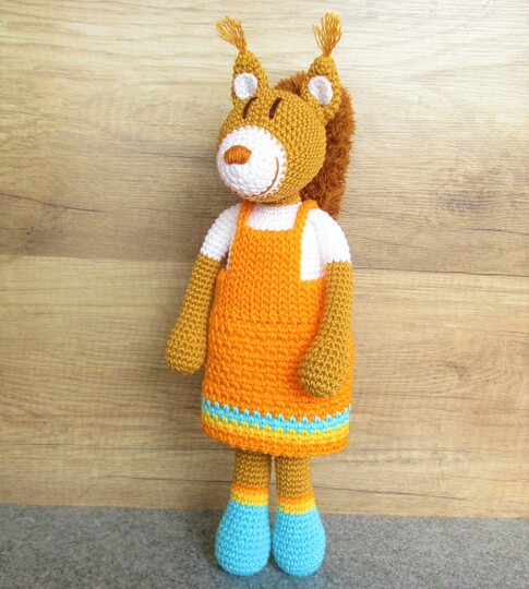 Die ausführliche Häkelanleitung zeigt dir Schritt-für-Schritt, wie du das süße Eichhörnchen und natürlich auch das (ausziehbare) Kleid häkeln kannst.