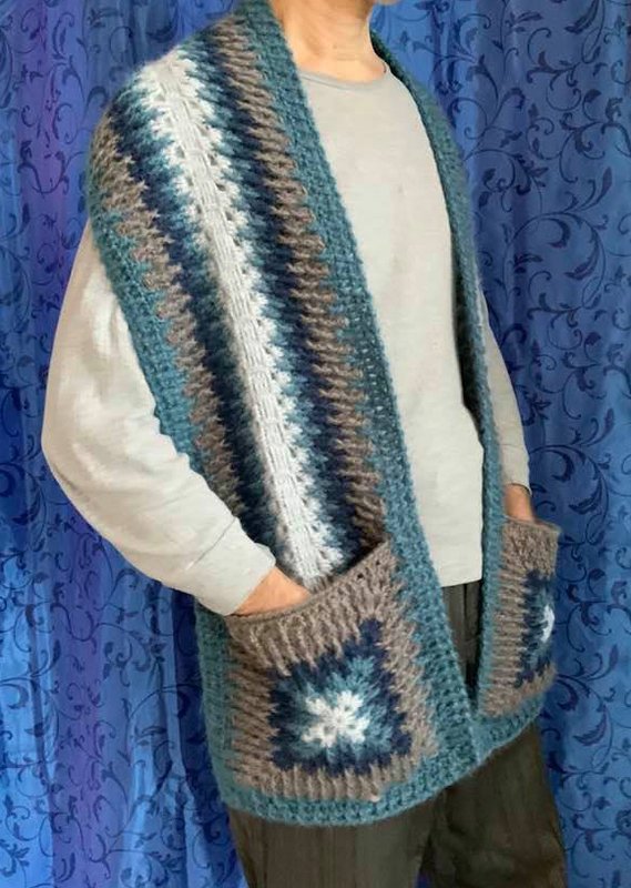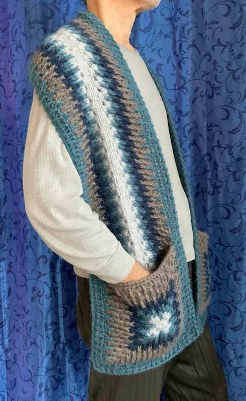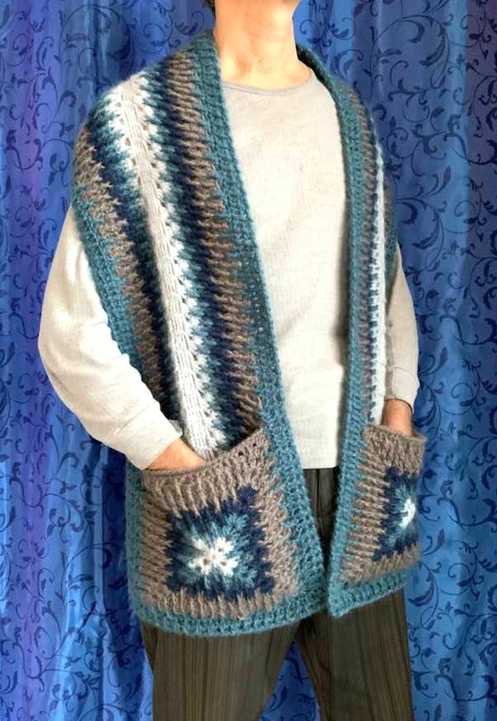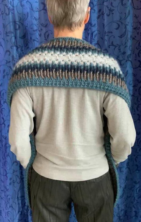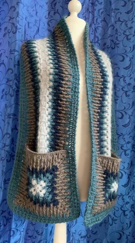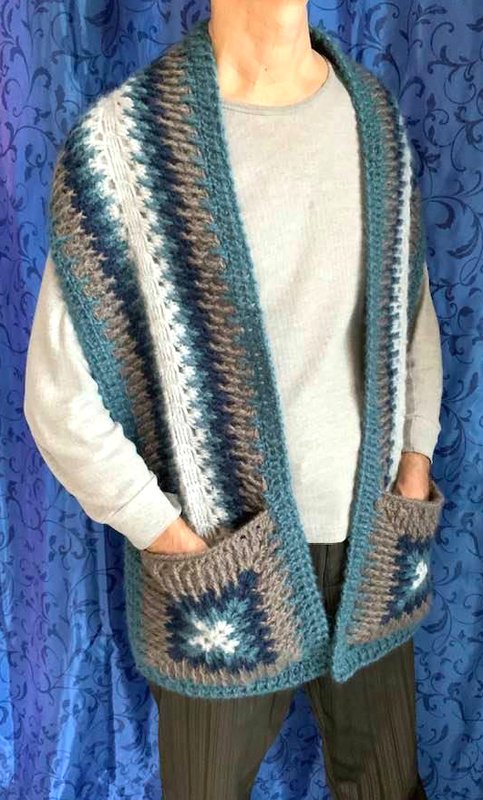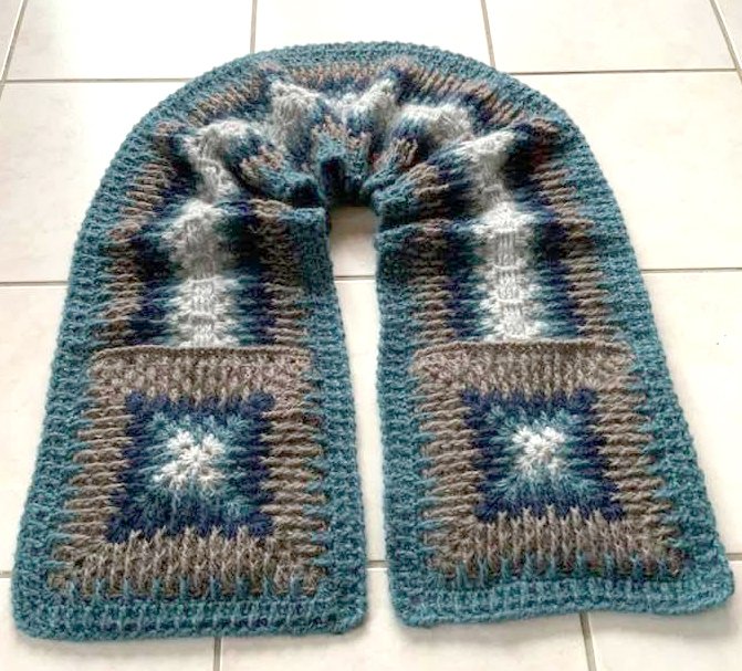 Hier ist der gehäkelte stylische Taschenschal "FLOW"...weich und warm + auch schön um die Hände zu wärmen...die Taschen sind einfach praktisch...