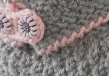 50 g grau und 50 g oder ein Rest rosa Schurwollmischgarn (LL ca. 125 m/50 g). 1 Paar Strick-N und 1 Nadelspiel Nr. 2,5 - 3 sowie 1 Häkelnadel Nr 2,5 z.B. von PRYM. 4 Blüten-Knöpfe in Rosa, ca 11 mm Ø. Evtl Strick-Elastik z.B. von PRYM