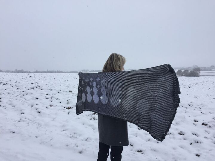 Die Stola wird gestrickt in Schattenoptik oder auch Illusionsstricken genannt.