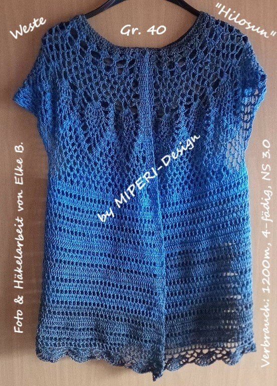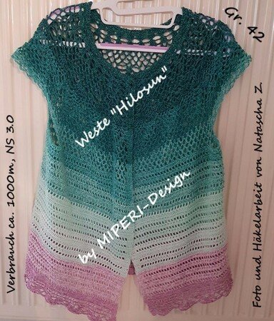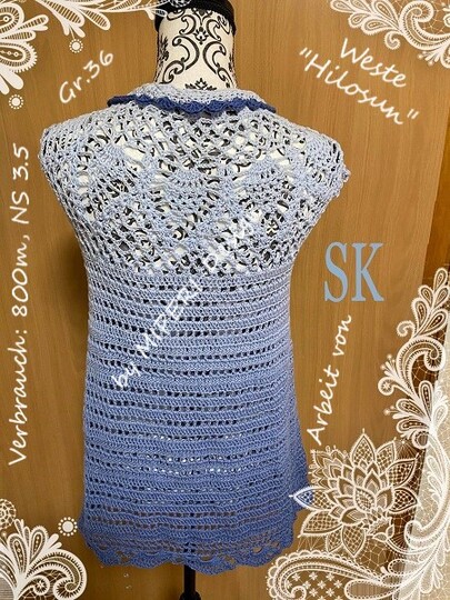 Die Weste mit dem besonderen Etwas. die schmückende Passe. Sie ist ein „must have“ für die sonnigen, warmen Tage ..... außerdem kann sie für jede Größe gearbeitet werden.